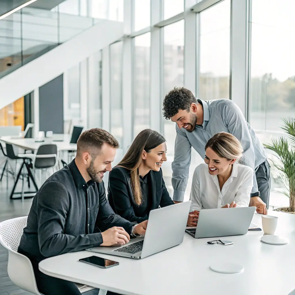 A professional team collaborating on ERP system implementation, showcasing Aventrix's ERP Consulting Services.